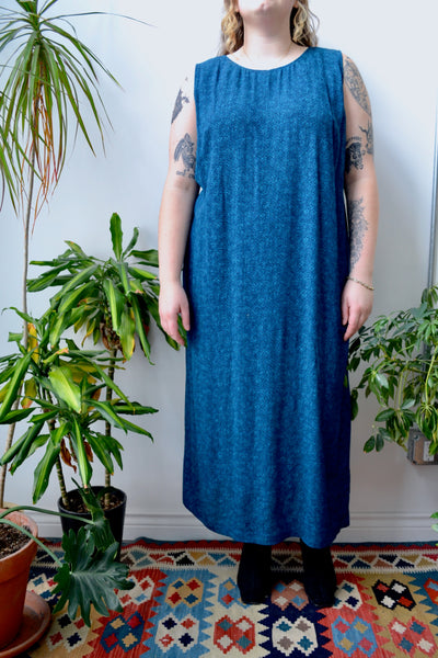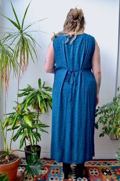 Dark Teal Blue Nineties Sleeveless Dress. Tie Waist Back. Unlined.