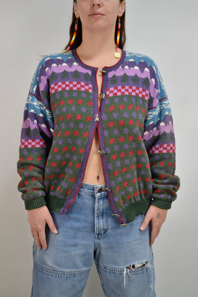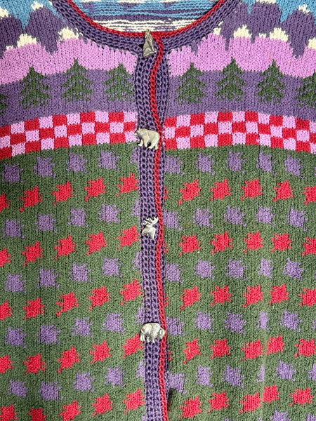 The Cutest Knit Cardigan. Unlined. Metal Animal Button Closure in Front. Ribbed Cuffs and Hem.