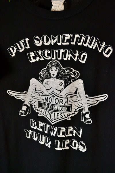 Vintage 70s/80s Single Stitch Harley Ringer Tee. Put Something Exciting Between Your Legs Graphic.