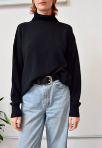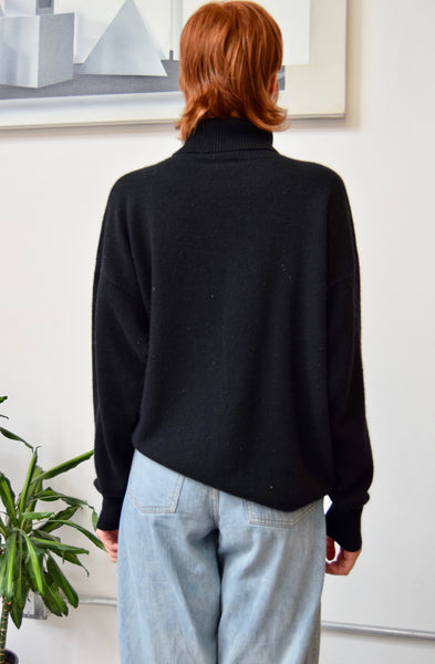 Classic Black Turtleneck Cashmere and Silk Blend Sweater. No Closures. Unlined.