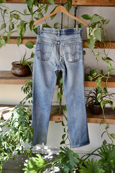 Vintage Eighties Thrashed Orange Tab Levi's. Zipper Fly With Button Closure.