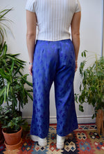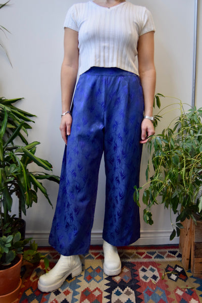 Blue Floral Patterned Wide Leg Pants. Forties Style Handmade Probably In The Seventies. Hip Button Closure. Unlined.
