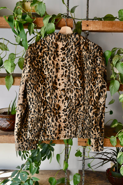 Vintage 90s/00s "Lucca" Velvet Leopard Print Jacket. Lined. Button Closure in Front. Large Notched Statement Collar.