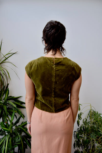 Sixties Handmade Velvet Top. Metal Mint Talon Zipper Closure Up Back. Unlined.