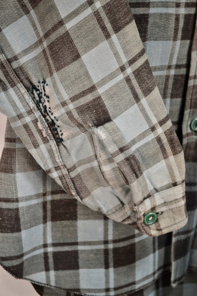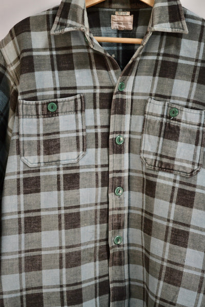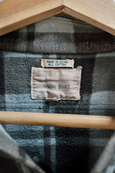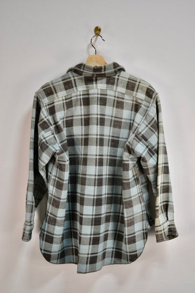 Vintage Champion Style Greeny/Blue Plaid Flannel Button Up Shirt.