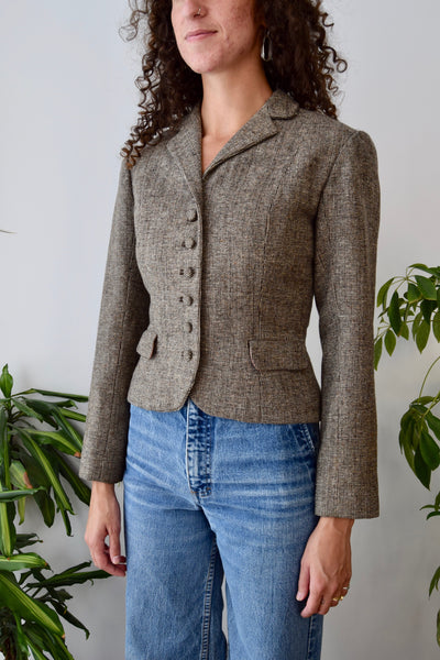 Vintage 1950's Wool Blazer. Collared. Button Closure. Darted Waist. Two Pockets. Lined.