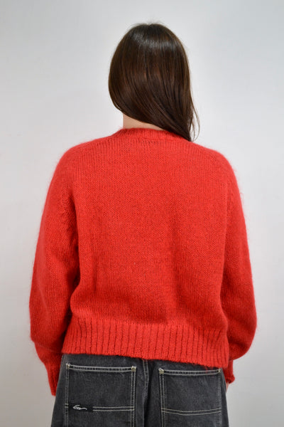 Vintage Nineties Gap Red Mohair Blend Cardigan. Button Closure in Front. Unlined. Freedom Sleeve.