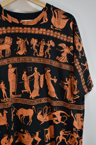Vintage Greek Pottery Themed Allover Print Single Stitch Tee.
