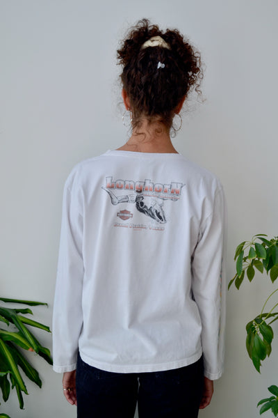 2001 "Harley Davidson" Long Sleeve T-Shirt. Crew Neck. Sleeve Graphics.