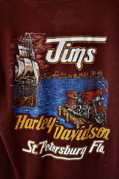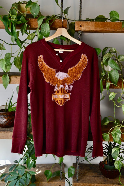 Vintage 80s/90s Burgundy Waffle Knit Harley Davidson Thermal Henley.