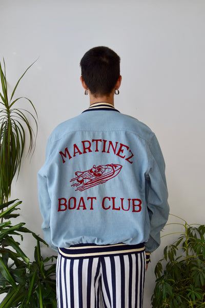 1950's Levi's Casuals Chambray Denim Bomber Jacket. Talon Zipper. Ribbed Cotton Trims. Embroidery On Chest And Back. Selvedge.