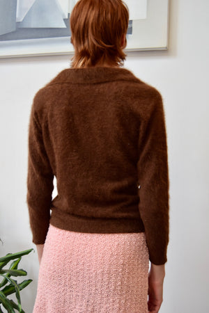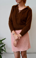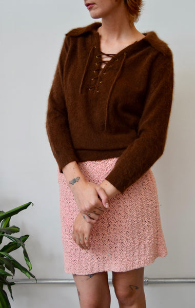 Soft Angora Collared Sweater With Lace Up Chest Detail.