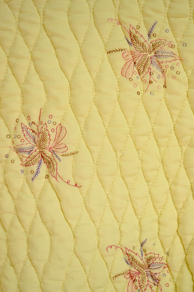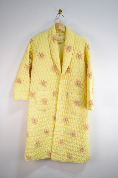Vintage Yellow Quilted Floral Housecoat/Robe. No Closure. Two Pockets. Unlined. Waist Tie MIA
