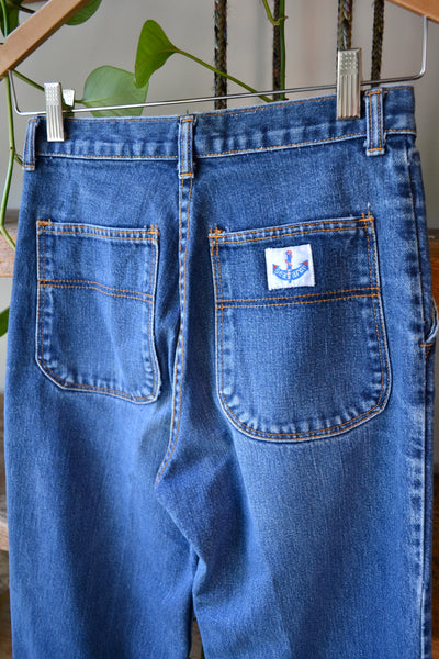 Vintage Seafarer Jeans. Four Pockets. Zipper Fly with Button Closure.