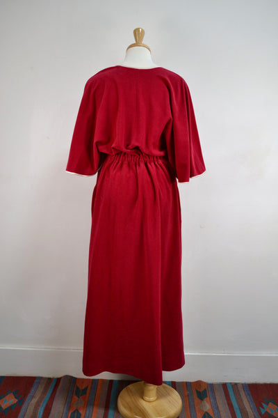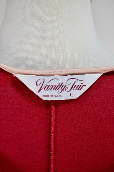 Vintage Vanity Fair Raspberry Red House Robe. Zipper Closure in Front. Elastic Waist. Batwing Sleeve. Two Hip Pockets.