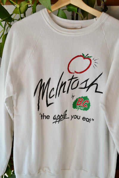 Vintage Eighties White McIntosh Apple Crewneck Sweatshirt. Raglan Sleeve.