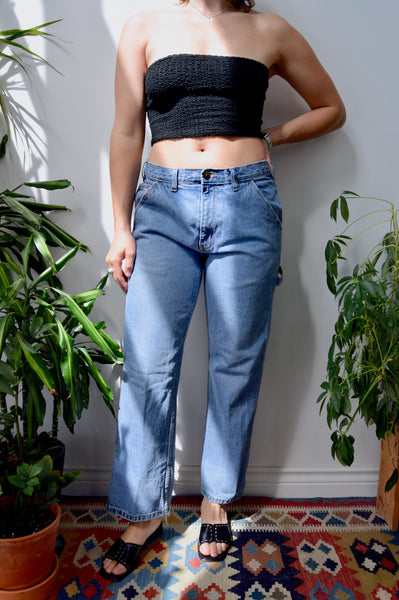 Wolverine Brand Blue Jean Carpenters. Straight Leg. Zipper Fly. Button Waist. Eight Pockets. Hammer Loop.