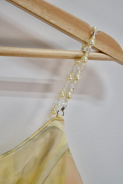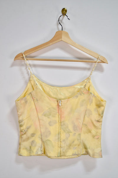 Vintage Y2K "Scott McClintock" Yellow Floral Top. Originally Part of a 3 Piece Set, Beaded Straps. Boned. Zipper Closure in Back.